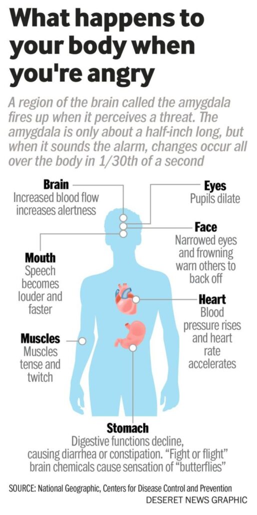 Om stop te kunnen zeggen. Je rustig uit te spreken. En te vechten als daadwerkelijk wordt aangevallen. Je hartslag en bloeddruk nemen dan toe en je ademhaling versnelt. Je lichaamstemperatuur stijgt en je huid transpireert. Je geest wordt scherp en gefocust.